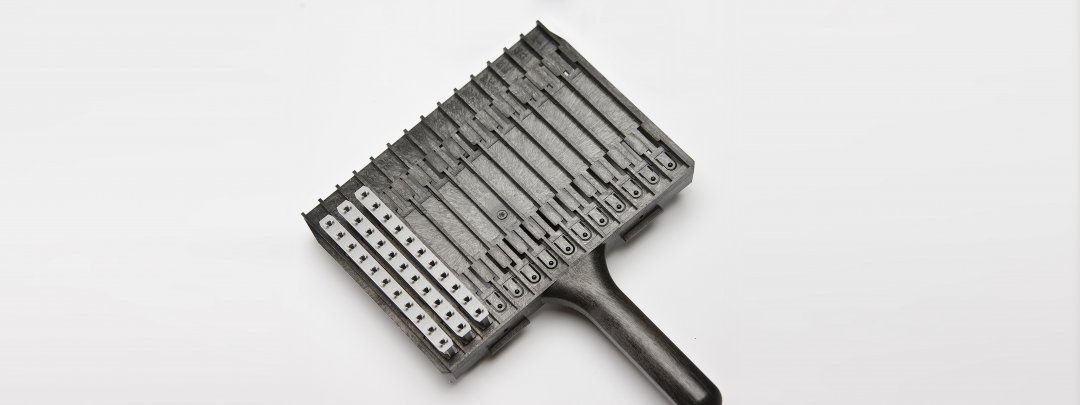 Belangrijkste toepassing is de fijnmechanische module. In het spuitgieten assembleren wij beweeglijke en onbeweeglijke functionele elementen van kunststof op gestanste of gesneden metalen printplaten. De functionaliteit bepaalt de constructie van de pasvorm.